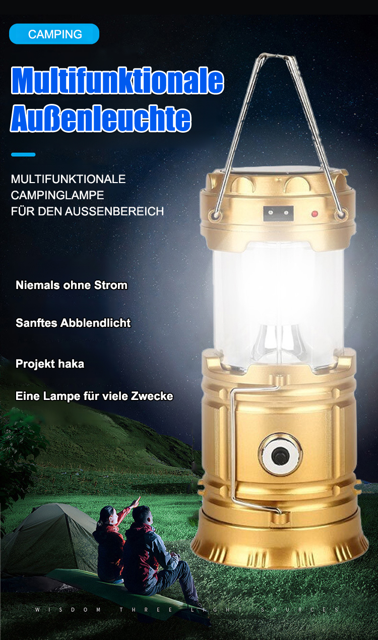 Keine Stromkosten! Solarbeleuchtung die die ganze Nacht leuchtet.☀️ Verabschiede dich für immer von der Dunkelheit!💡 Stoßfeste und wasserdichte Solarleuchte begleitet dich auf jedes Abenteuer!🌧️ Eine Lampe löst alle Probleme bei Stromausfällen und Campi